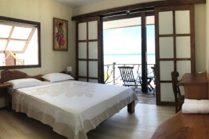 Seaview Bungalow : Ce bungalow, un peu à l?écart de la maison principale, est situé en bord de lagon avec une plage de sable blanc juste devant. L?intérieur cosy comprend un lit king et une salle de bain privative avec eau chaude. Idéal pour les couples.