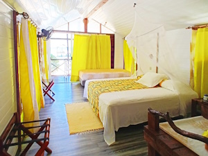 Plus spacieux que le bungalow plage double, ces hébergements offrent également un accès direct à la superbe plage de sable fin. Ils disposent des mêmes équipements : moustiquaire, ventilateur, coffre-fort et mini-réfrigérateur. La salle de bain privée comprend une douche et des toilettes.